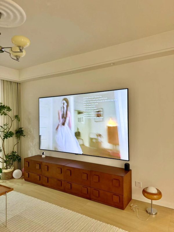 2) The frame is treated with anodic oxidation process, which is more beautiful and durable; 3) The frame is assembled with 45°cutting corners, which is beautiful and convenient; 4) Ultra-strong tension spring fixes the screen, loosening and keeping the screen flat at all times; 5) With a bezel width of only 9mm for maximum visibility with minimal installation size, the ultra-narrow bezel provides a sleek, sophisticated look that is ideal for modern home theaters and commercial references.